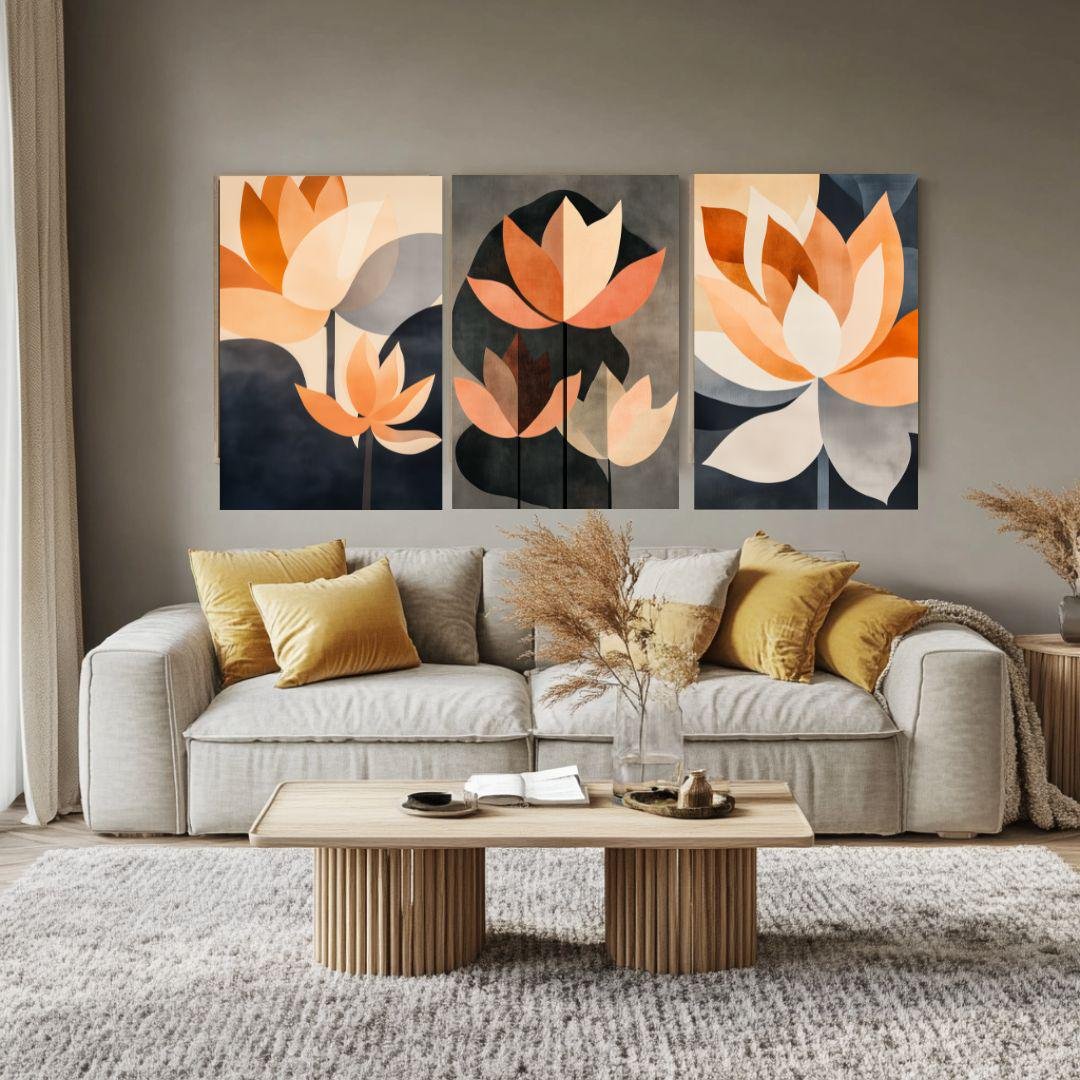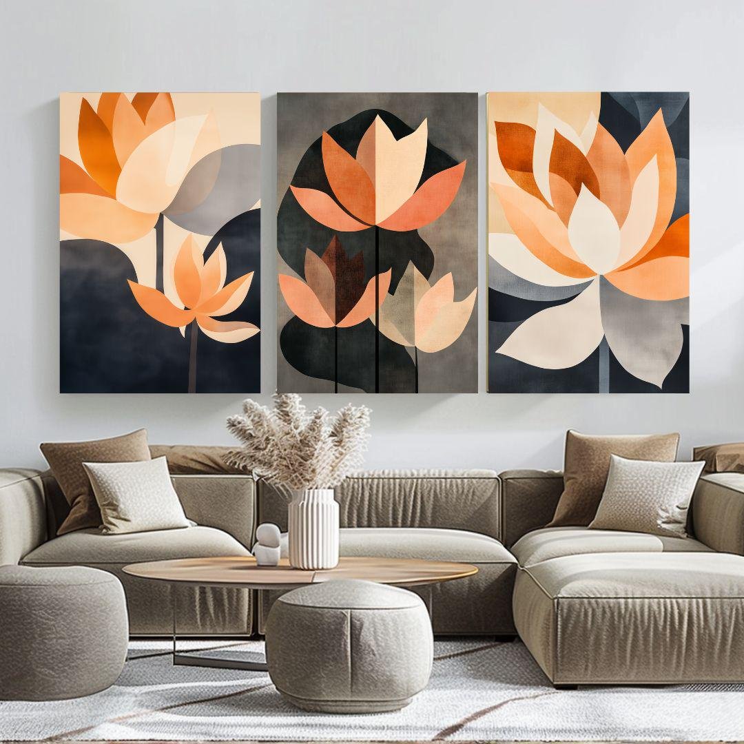 Boho Abstract Lotus Wall Art Set of 3