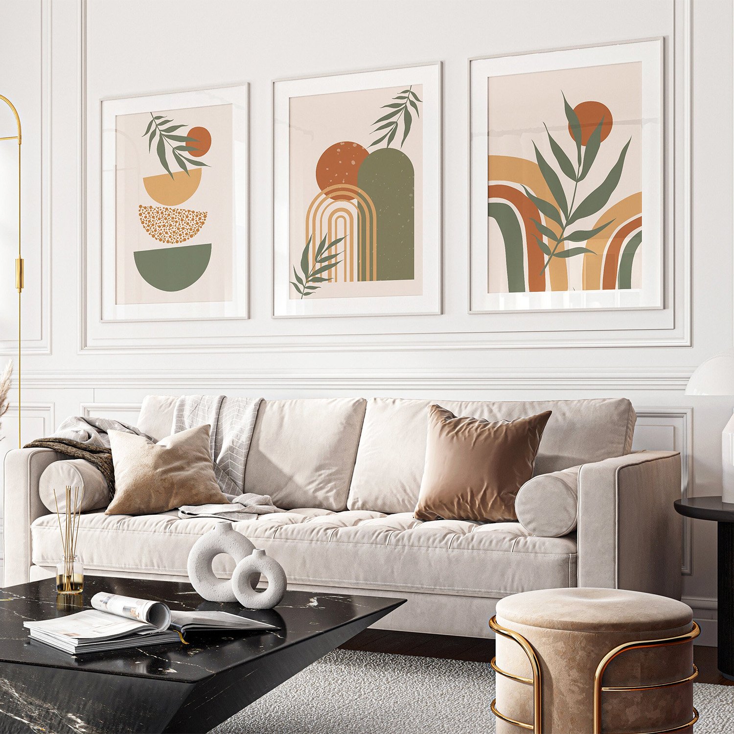 Boho Abstract Mid Century Wall Art Set