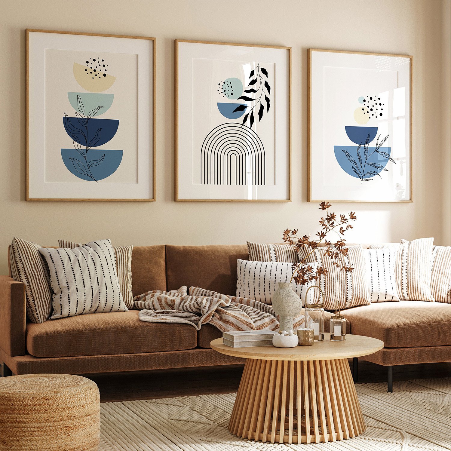Boho Blue Geometric Wall Art Set