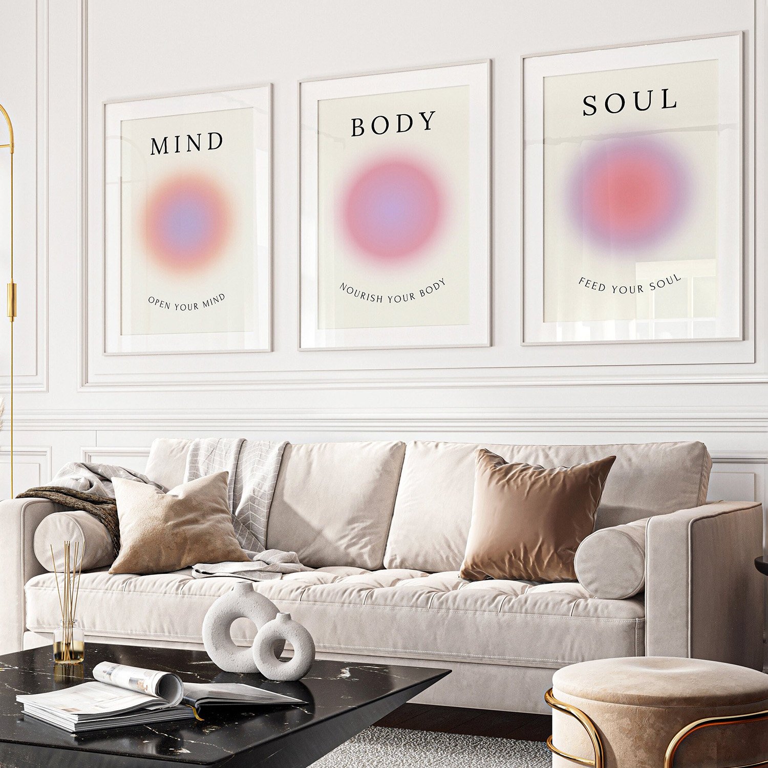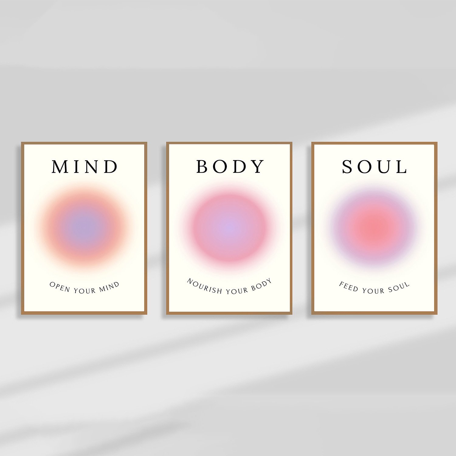 মাইন্ড-বডি-সোল থিমের এই স্পিরিচুয়াল অরা প্রিন্ট সেট দেয়ালে যোগ করবে পজিটিভি, নান্দনিকতা এবং এক ট্রেন্ডি জেন-জেড স্টাইলের ছোঁয়া। প্রতিটি প্রিন্টে রয়েছে উজ্জ্বল ও মনোমুগ্ধকর রঙের সমন্বয়।