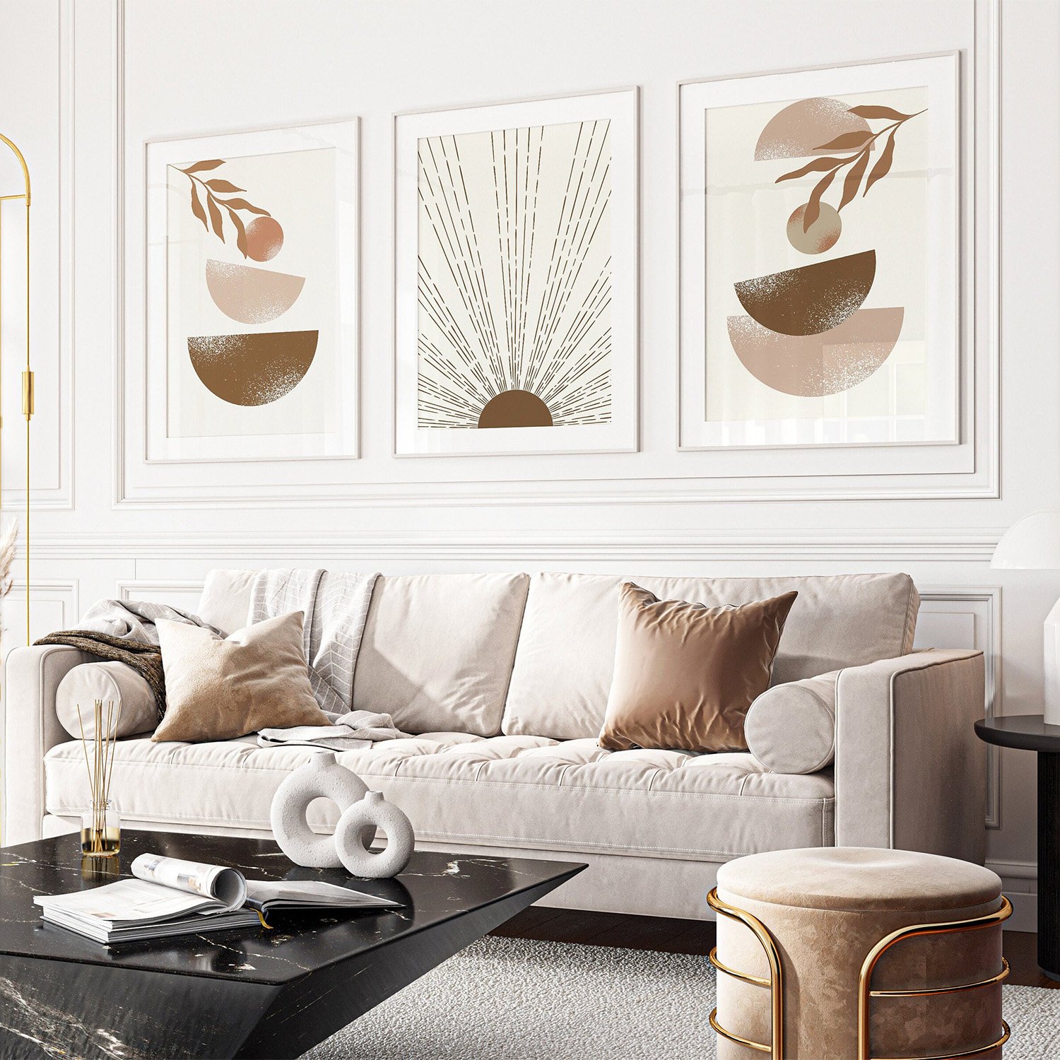 Mid Century Boho Wall Art Print Set For Home